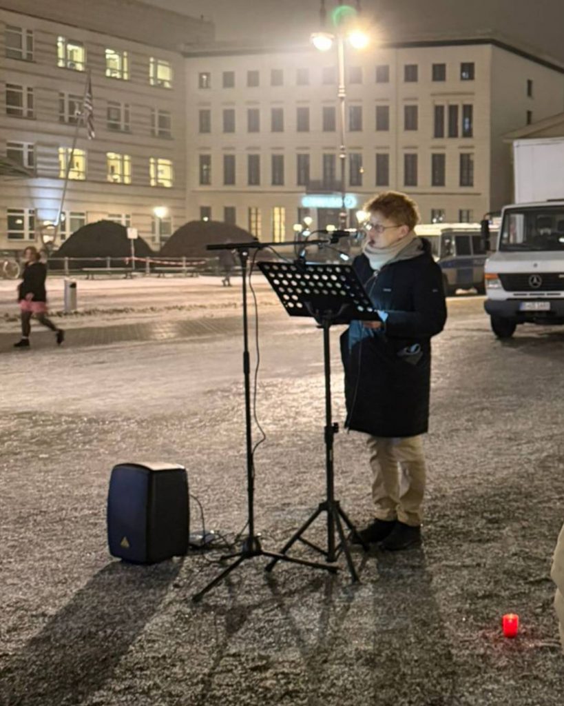 Wir als "Bündnis gegen Antisemitismus Berlin" kamen am 27. Januar 2026 zu einer öffentlichen Lesung auf dem Pariser Platz in Berlin zusammen, um zu erinnern: Wir lasen Texte von Opfern, von Menschen, die Auschwitz überlebt haben, von Befreiern und Zeitzeugen. Denn wir denken: Ihre Stimmen dürfen nicht verstummen.